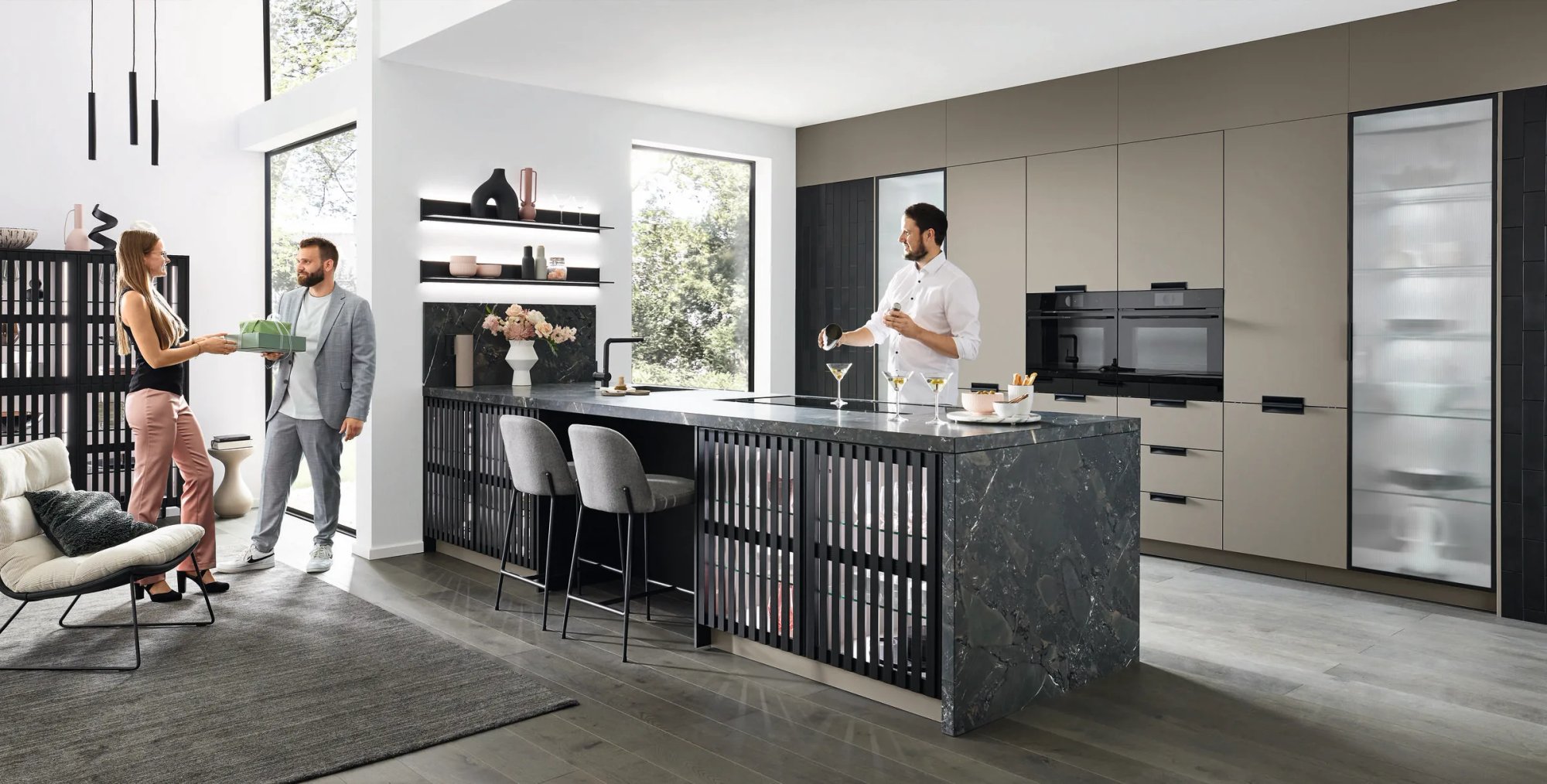 Sommige keukens fluisteren. De Ballerina Pur 2681 spreekt — en iedereen luistert. Het verticale lamellenfront van het eiland, in mat zwart met een dik donkermarmeren blad, is een architectonisch statement dat de keuken tot kunst verheft. Hier staat niet zomaar een kookplek; hier staat een ruimte die uw gasten doet stilstaan.
